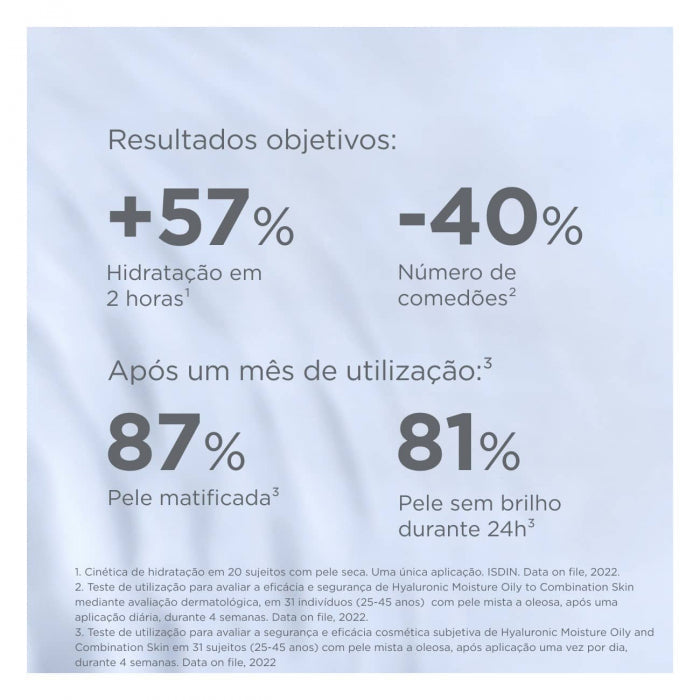 ISDIN Isdinceutics Hyaluronic Moisture Pele Oleosa proporciona uma pele mais equilibrada, macia e jovem.